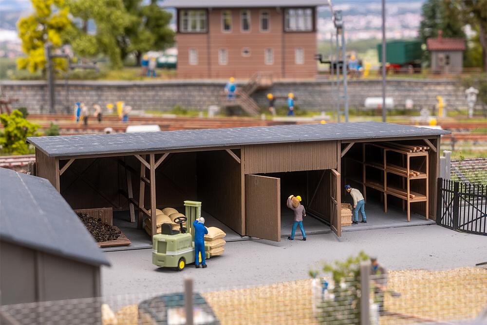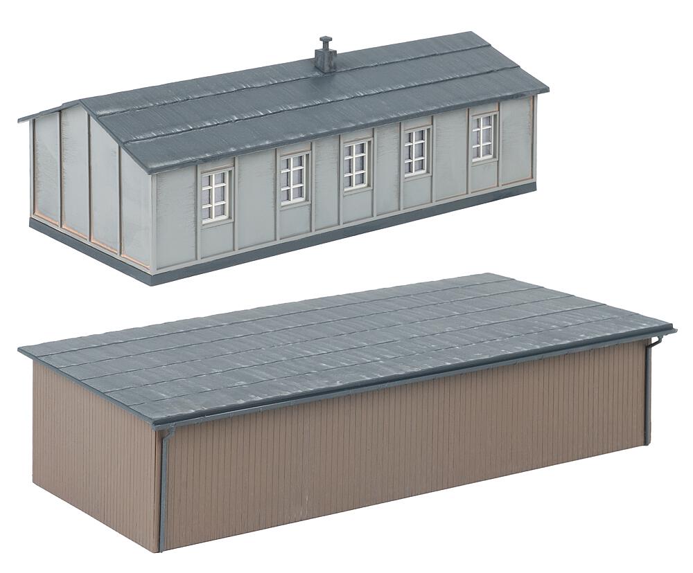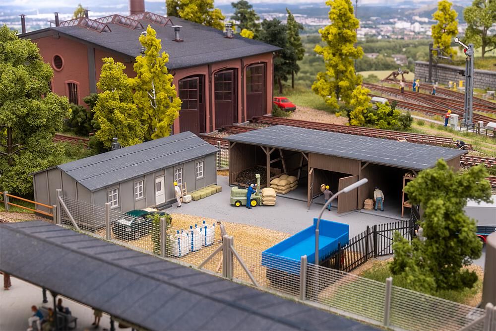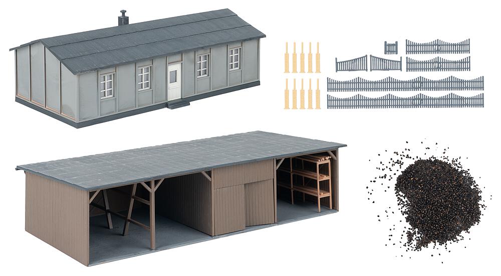 Questo set è composto da una baracca grigia e da un capanno per il carbone in legno, completato da piccoli pezzi di carbone. Ideale per arricchire plastici o diorami con dettagli industriali realistici.