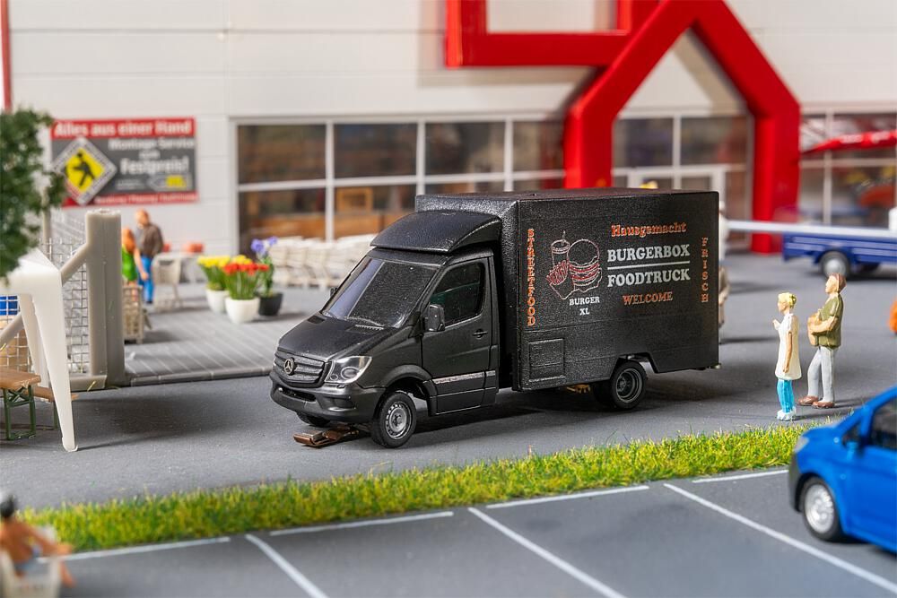 Street food su ruote: il «BURGERBOX Foodtruck» porta il fascino urbano e l'atmosfera culinaria sul vostro impianto digitale. Parte integrante del Car System Digital, convince per la sua struttura compatta, la piccola capsula a ultrasuoni e il design ricco di dettagli: perfetto per scene urbane moderne e dinamiche.