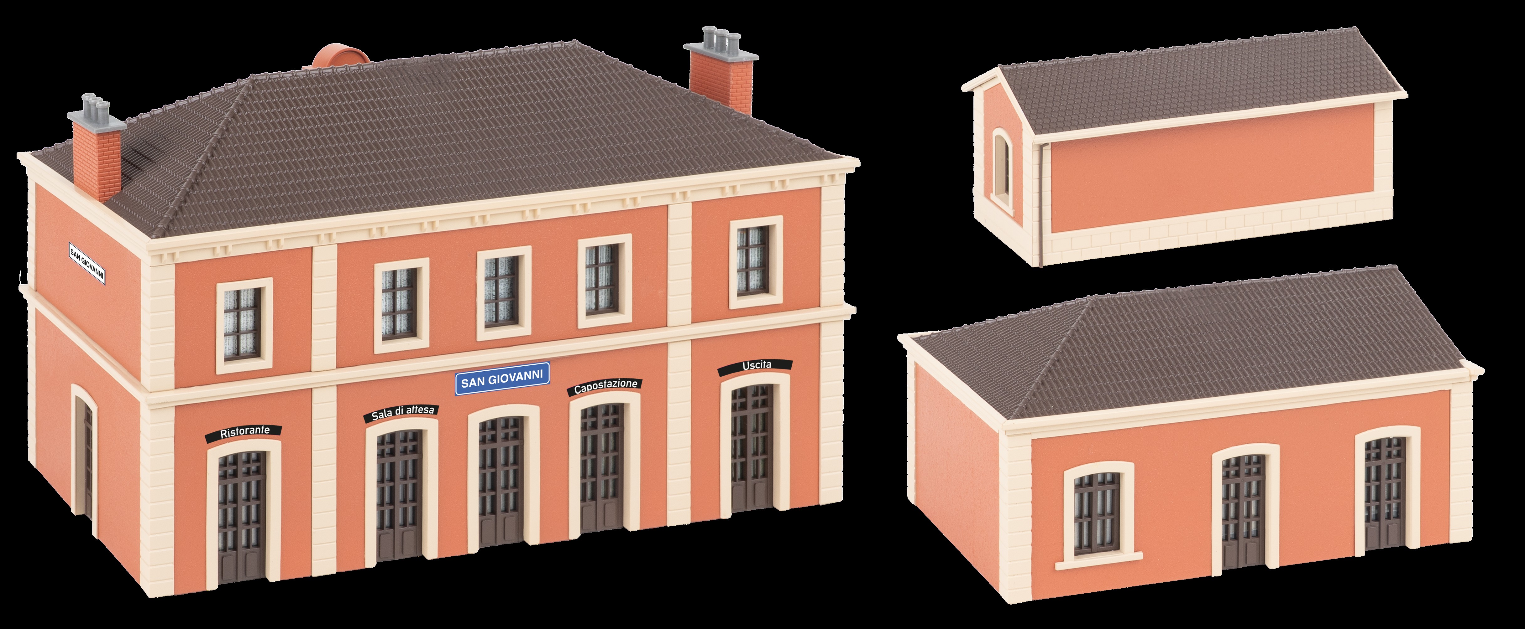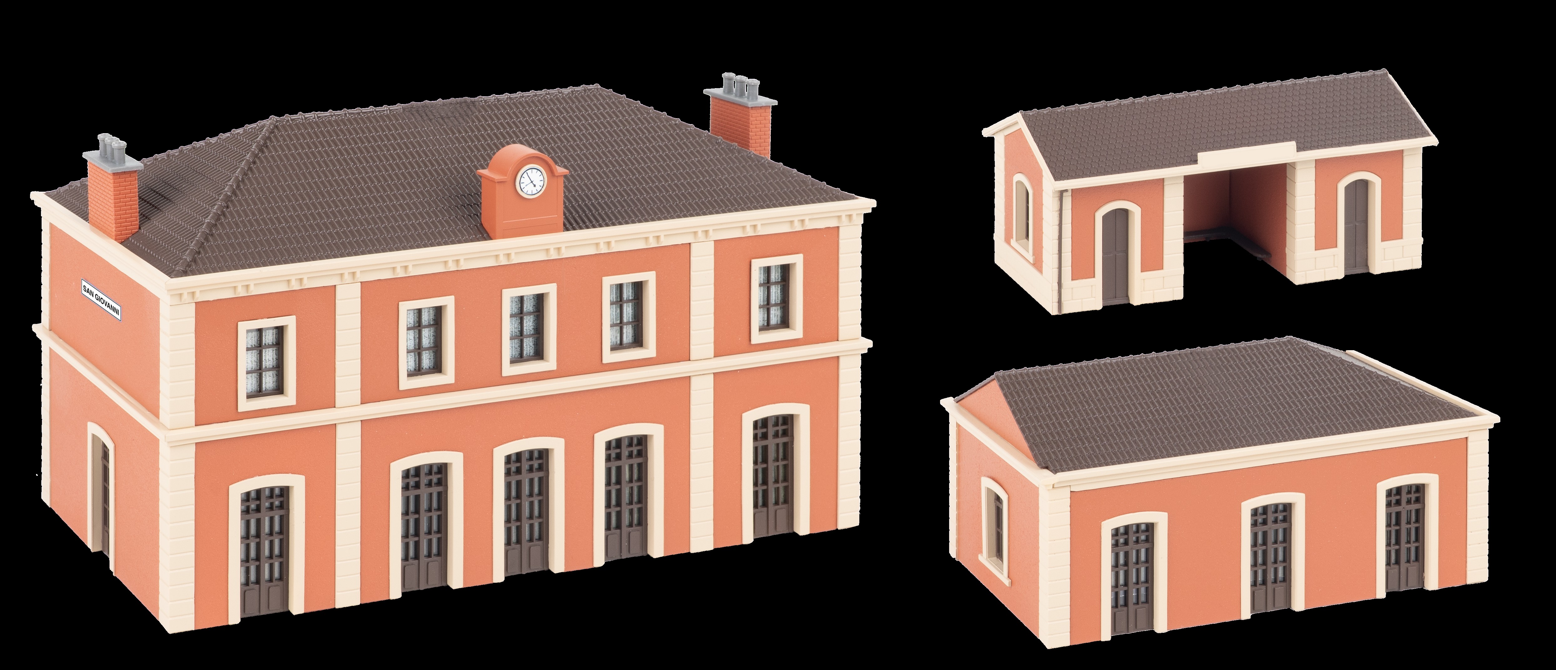 Questo kit contiene: 187 singoli pezzi in 4 colori, parti per i finestrini, 2 stencil per le tende e 1 libretto di istruzioni. Per l'assemblaggio utilizzare la colla per plastica FALLER EXPERT.
